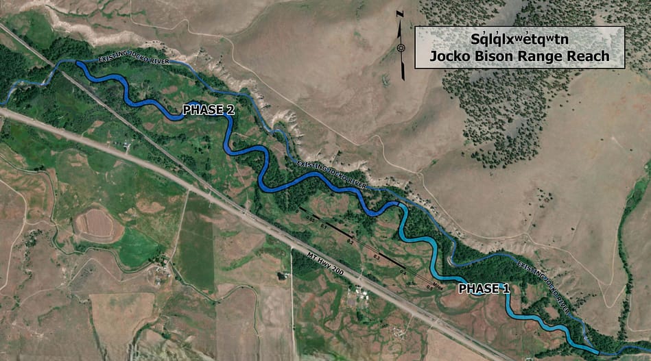 The Jocko River Bison Range Restoration Reach is a crowning jewel of a large-scale watershed restoration effort aimed at improving habitat and water quality to benefit native fish and wildlife species. The Project proposes to construct approximately 14,300 linear feet of new Jocko River channel in an historical channel alignment in the former floodplain, reclaiming approximately 12,000 feet of existing Jocko River to upland, wetland, and riparian habitats, and actively restoring the current and former floodplain. The proposed project is expected to produce over 30 acres of new wetland habitat.